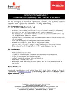 Department at hr@frontseat.co.za by 20 February 2025. Reference: Support Centre