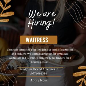 Send your CV and 3 pictures to: 077 409 6354