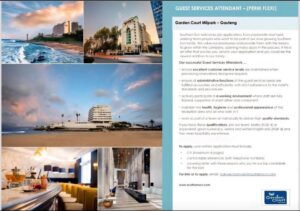 We are looking for a Guest Services Attendant at Garden Court Milpark Gauteng.
