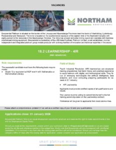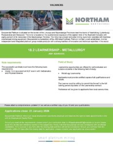 Email your CV to HRApplicationsBD@norplats.co.za. Closing date is Wednesday, 21 January 2026!